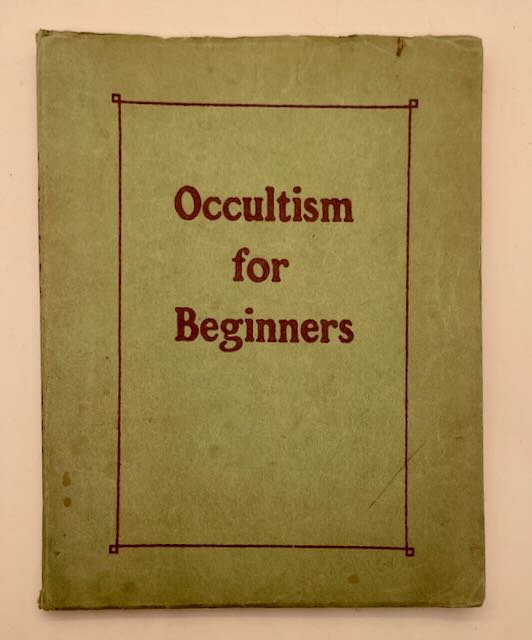 Occultism for Beginners by William H. Dower, published in 1917. One of the most important works penned within the realm of theosophy, “Occultism For Beginners” is truly just that- a primer and introductory work detailing some of the more general beliefs of theosophy, written by William Dower, who headed the Temple of the People, now in Halcyon, California. The work is broken into lessons- short entries dwelling specifically on the topic of “correspondences” between aspects of the physical and the divine, especially those found in cells, the brain and its components, other organs, and in the world of atoms and radioactivity, applying these concepts to disease, health, and the spiritual realm and astral reality surrounding it. It may be seen, in a way, as a more modern mode of alchemy, an updated, Edwardian-era Paracelsian work of importance within a spiritual movement which has had lasting impact on the world from its birth over a century ago into the modern age. Softcover in lecture booklet format. Staple binding lightly rusted.